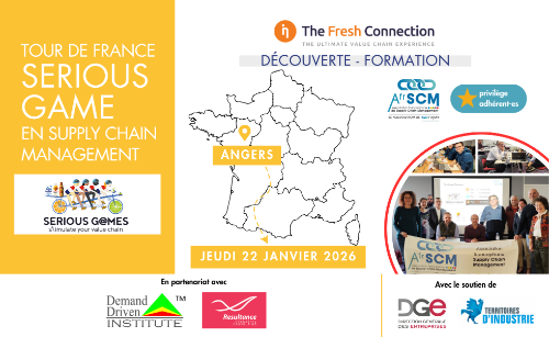 Vous voulez mieux comprendre en l'expérimentant comment transformer vos Supply Chains en leviers de la mise en place de la stratégie de votre entreprise grâce à des tactiques alignées ? Venez découvrir et vous former sur le Serious Game The Fresh Connection dans sa version Demand Driven. Vous aurez l'équivalent de 2 ans 1/2 de simulation pour redresser financièrement l'entreprise ET en même temps augmenter le taux de service aux clients pour gagner des parts de marché.